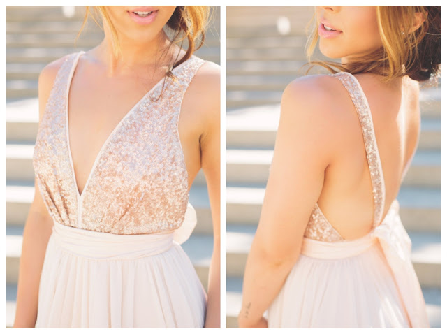 We don't feature enough wedding dresses on Before the Big Day - something I definitely need to change! After all, lusting after the perfect Jenny Packham wedding gown is virtually a rite of passage for every bride. If only we could all afford them! So when I spot a semi-affordable wedding gown {just over £1000}, that completely blows my mind, I consider it my responsibility to spread the word. This incredible blush, backless wedding dress by Truvelle makes me want to get married all over again. It's the combo of the swishy, pink-champagne, chiffon skirt and the rose gold sequinned bodice that's getting me excited - it's elegant and sexy at the same time! Don't miss Truvelle's Etsy shop for more incredible gowns. P.S. Want to save money on your wedding dress? Check out all my Wedding Dress Sample Sale news.